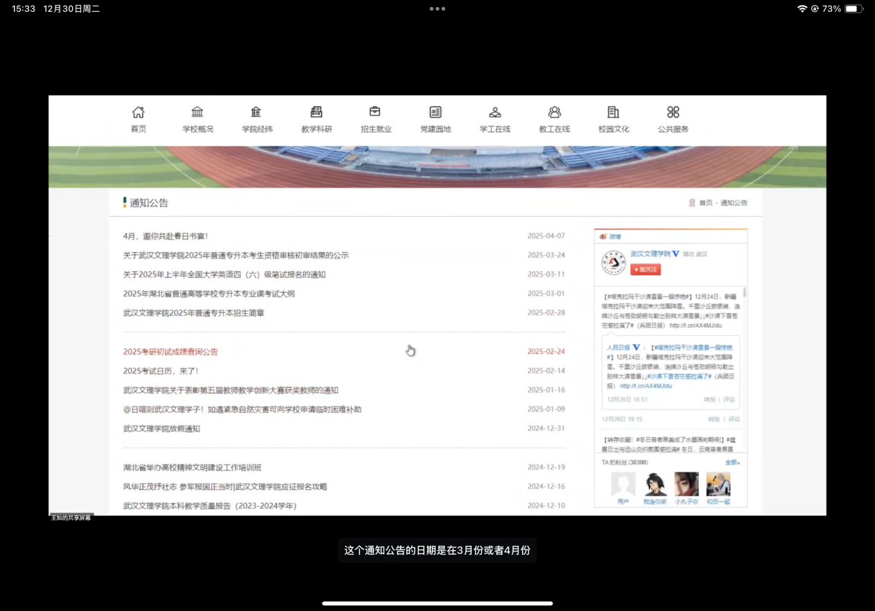 本次会议采用线上形式。会议伊始,王灿老师就专升本的核心政策进行了详细解读,带领同学们进行查询信息流程,他讲到招生简章和考试大纲是备考的根本依据,所有同学都应密切关注学校官网“通知公告”栏,确保第一时间获取权威信息。