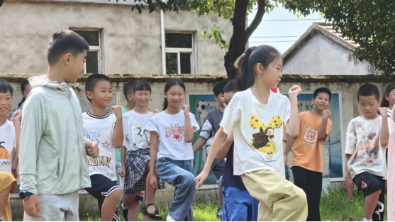 老师用鼓励的话语引导孩子们跨越羞涩、大胆展示。从最初的肢体僵硬,到后来能跟随音乐节奏完整呈现动作,孩子们在互动中悄然成长。有的小朋友偷偷观察志愿者的姿势,悄悄调整动作幅度,有的在掌握要领后,还会带着身边同学一起练习。随着动作越来越娴熟,孩子们眼中逐渐产生自信,脸上绽放出深深的笑容,既有掌握技能的雀跃,更有被肯定的融融暖意。