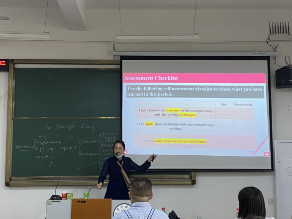 张希希老师的课程设计基于北外文秋芳教授的POA Theory,结合大学英语四六级作文评分标准,重点讲授了an example essay的写作方法。课程以success 与failure 为主题,围绕文章结构内容及事例选取技巧展开,教授学生写出一篇高分事例作文。课后组织学生线下演讲,启发学生思考成功与失败的辩证关系,提高学生口语能力的同时也帮助学生树立正确的人生观。