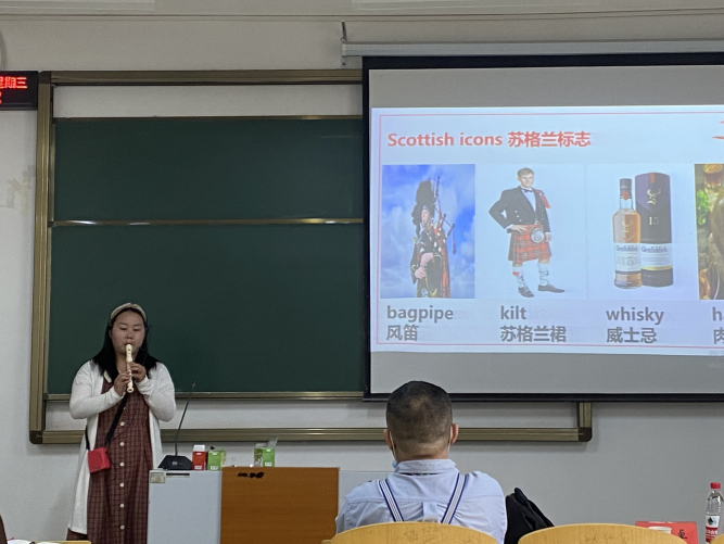 张弘老师则带来的是《英美文学史及选读》这门课程的课堂教学展示,选自书中第18章Robert Burns,通过竖笛演奏,引入讲课的主题:苏格兰民族诗人,农民诗人彭斯的生平及作品,深入挖掘彭斯爱情佳作A Red Red Rose, 探讨这部作品的诗歌形式,语言特色。并通过对比传统诗歌《上邪!》,总结这两部作品共同的主题,即用朴实无华的语言,生动感人的意象,向我们传达出对爱情忠贞不渝与长相厮守的美好愿望。借此诗歌,也希望新时代的年轻人能够拥有,呈现并守护爱情的美好与坚定。