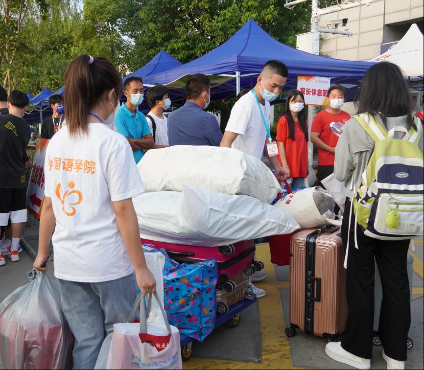 从清晨到日出、从正午到日落,不仅仅是行李之重,也是父母之愿。9月15日上午六点半,各位领导、老师们及分团委学生会、志愿者们、小班们已经早早到达岗位准备迎接新生工作。在校门口,在报到处,在食堂外,在宿舍中,都有学长学姐们的身影。