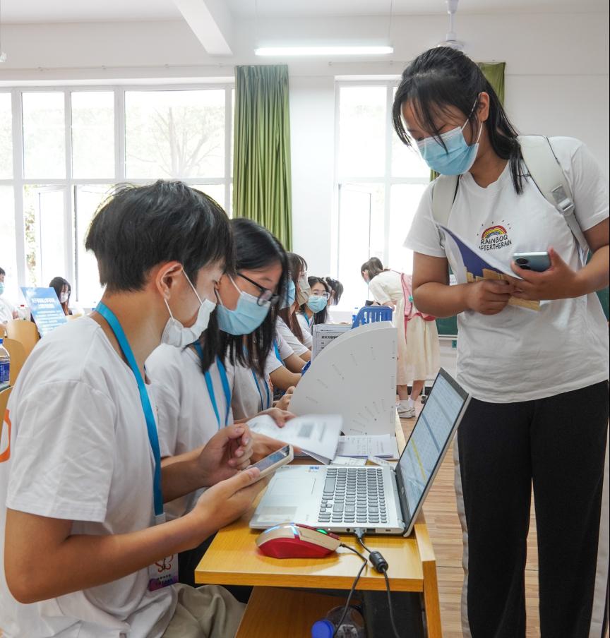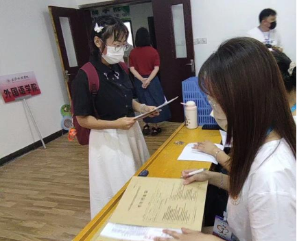 来到校门口,姚媛媛老师带领一队志愿者迎接报到的新生,她们仔细地核实新生进校必备资料,清点证件,并及时统计未能返校新生的信息,与场内工作人员互通互达,实时跟进新生报到人数。