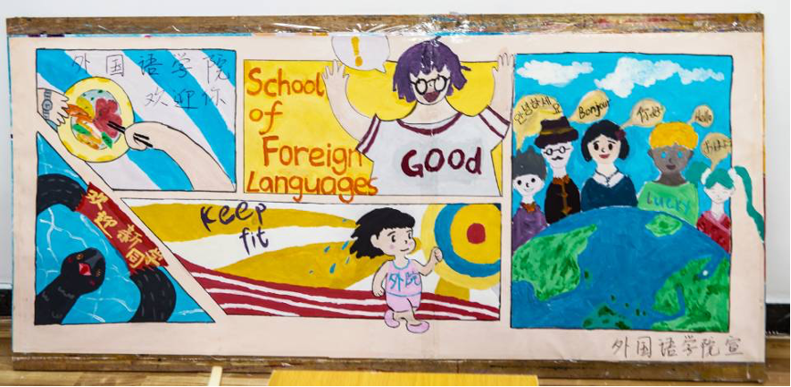 9月14号,在新生正式报到之前,为了让他们感受到yl23411永利集团这个大家庭温暖的氛围,分团委书记姚媛媛提前部署,组织学生绘画相应主题的展板和黑板报,并对迎新教室做了装饰。