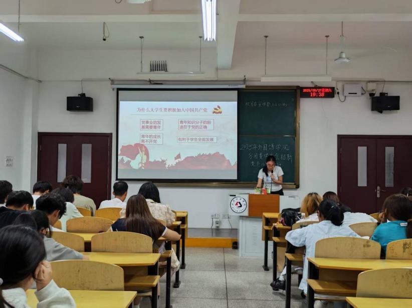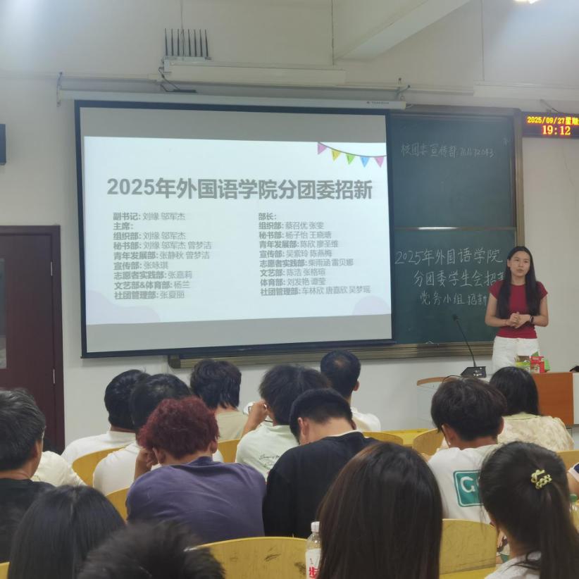 次日傍晚,分团委学生会与党务小组接力宣讲,在4-511教室带来精彩呈现。分团委学生会各部门主席、部长依次登台,通过PPT详细介绍活动策划、权益维护等职责,以及成员在统筹协作中的成长空间;党务小组成员压轴登场,系统分享党建实践工作内容与思想建设方向,为新生提供多元且清晰的发展选择。