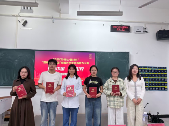 经过激烈角逐与评委综合评定,比赛最终决出一、二、三等奖。颁奖环节庄重有序,见证选手们的成长与收获:李梦娟老师为三等奖获得者颁奖,获奖选手为张欣若、邢薇薇、黄玉晴、付晶晶、马子康;张锦茹老师为二等奖获得者颁奖,获奖选手为柴雨涵、吴孟瑶、林琪琦、牛月光;徐江老师为一等奖获得者颁奖,获奖选手为张嘉莉、彭雄柏、李语帆。值得关注的是,一等奖的三位同学将代表学校出征更高层级的外研社演讲比赛,在此预祝他们延续“乘风破浪”的精神,在全国舞台上展现学校风采,取得优异成绩!