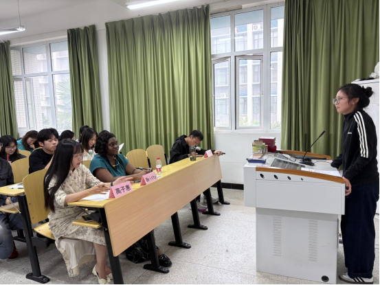 回答问题:高子惠老师与外教Britty针对选手演讲内容深度提问,选手需即时回应并拓展阐述,既展现了跨文化沟通素养,也体现出敏捷的思辨能力,现场互动频繁,亮点纷呈。