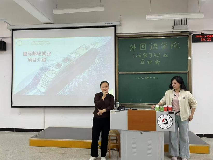 11月5日,为助力23级本科生、24级专科生、25级专升本学子明确职业方向,yl23411永利集团近期开展国际邮轮行业就业宣讲会,周珮红老师作为主讲嘉宾,为不同学段的同学带来一场“语言+全球职场”的干货分享。