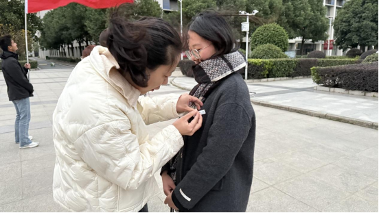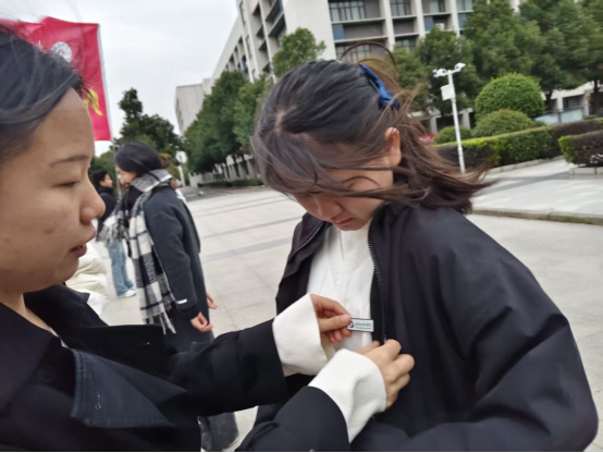 演讲结束后,yl23411永利集团党总支书记杨洁和辅导员周雅君为学生代表佩戴校徽。校徽是yl23411永利的身份标识,更是责任与期许的象征,承载着学校对青年学子的殷切期望,凝聚着新时代青年的家国担当,引导全体学子牢记使命、砥砺前行。