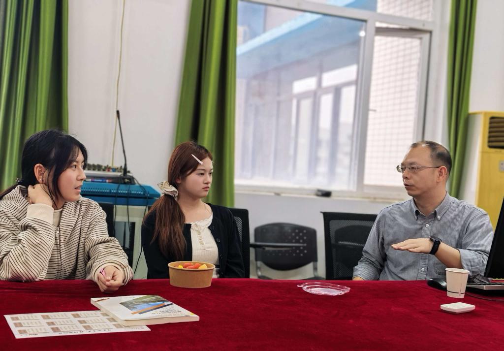 分享环节结束后,讲座进入互动交流环节。吴紫玲、白洋洋、柴雨涵三位同学率先发言,结合自身英语专业学习的经历,分享了对专业学习的感悟、对未来发展的思考,同时提出了学习与职业规划中遇到的困惑与疑问。针对同学们的分享与提问,出版社领导与现场老师逐一进行了细致解答,不仅为同学们梳理了英语专业学习的核心方向,更鼓励大家拓宽视野、主动探索,在夯实专业基础的同时,多关注行业动态、多参与实践活动,不断提升自身综合竞争力,为未来发展积蓄力量。张老师也非常接地气的和同学们互动,指出同学们的不足,比如在提问上十分谨慎,害怕出错,而年轻人就应该有一种不怕出错、敢于认错、善于改错的精神,才能在激烈竞争中脱颖而出。