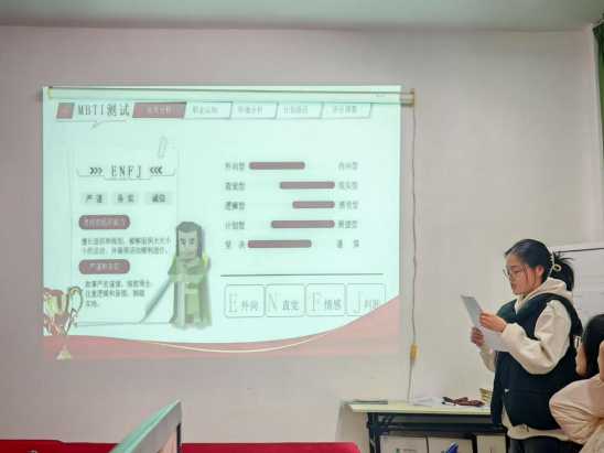 25级英语专业朱文雅同学,则将其职业目标锁定为“英语老师” 。她在展示中,对比分析了不同学校在教学目标、学生群体及师资要求上的差异,还分析了自身职业规划的来源。尽管作为一名大一新生,但她已经做好基本的职业生涯规划,为她这份极具视野的职业蓝图提供了强有力的支撑。