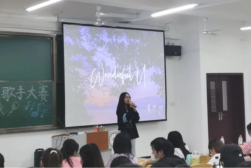 21级外语二班的周梦妍同样以一首《Wonderful U》作为参赛曲目,她以独特的歌声以及对歌曲富有感染力的演绎,将相爱的人因为某种原因无法在一起相恋直到永远的情感赋予自己的理解。